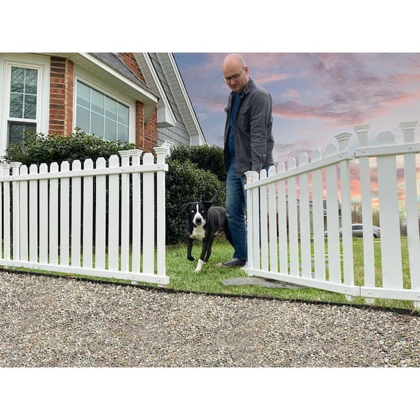 Zippity Outdoor Products 4 6 Ft X 2 5 Ft Bella Puppy And Garden White Picket Vinyl Fence Gate Zp19070 The Home Depot