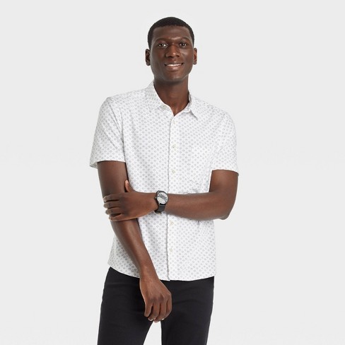 Men S Floral Print Short Sleeve Button Down Shirt Goodfellow Co White Floral M Target