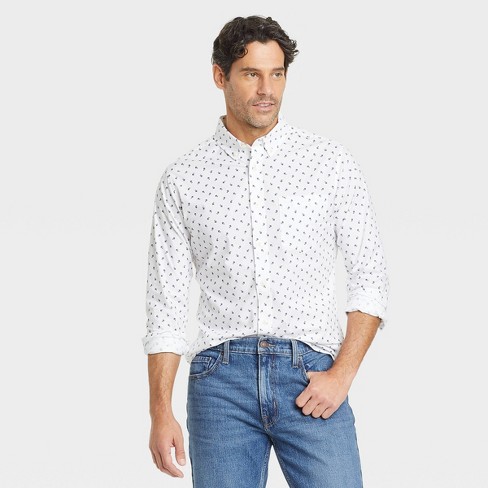 Men S Floral Print Slim Fit Long Sleeve Button Down Shirt Goodfellow Co White Floral M Target